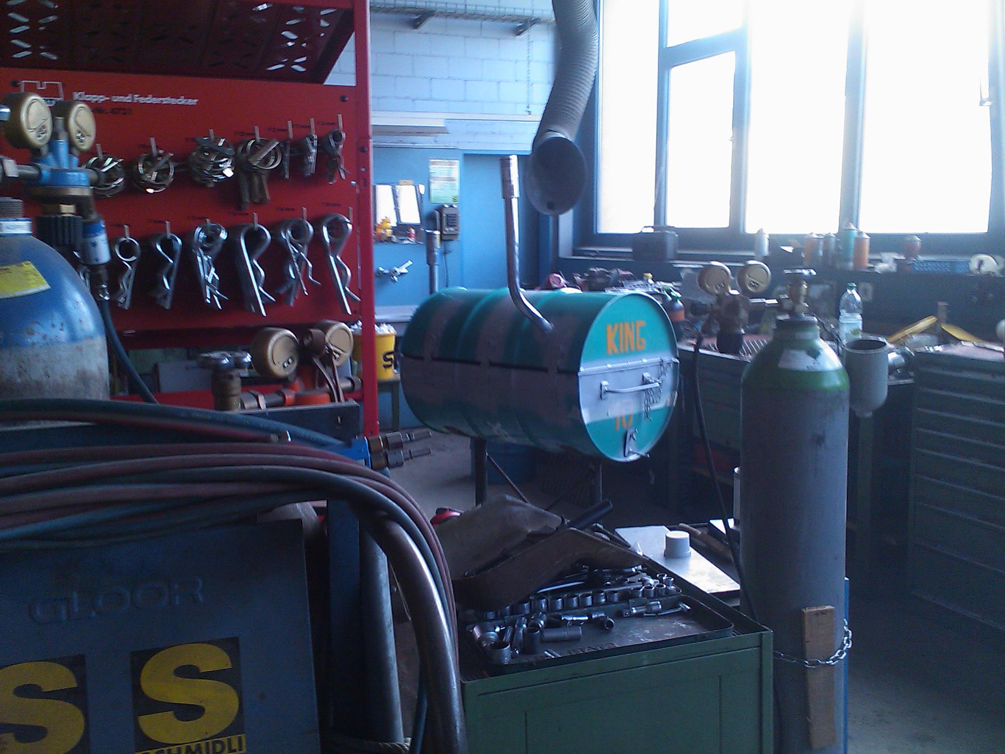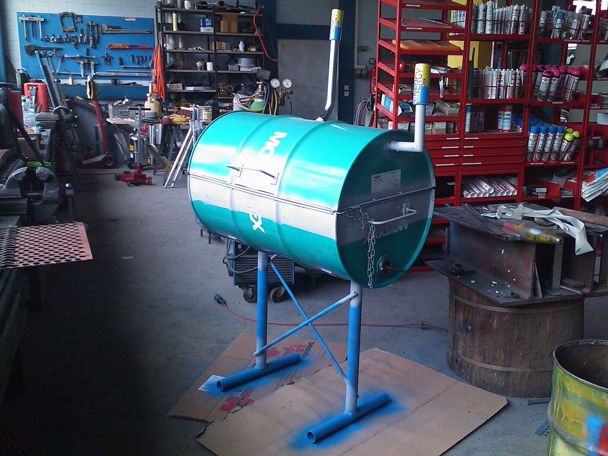 Ein Kohle-Grill aus einem alten (Öl)-Fass.