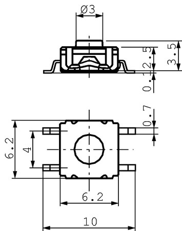 4 Pins. Dimensionen ähnlich wie auf dem Datenblatt Bild, d.h. Abstand zwischen 2 Pins 4mm (Pin-Mitte zu Pin-Mitte) und Länge ca. 6mm.