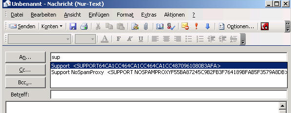 User A schreibt dem User B des öfteren Mails. Im Outlook (2007) wird ja dann die Mail Adresse hinterlegt, sodass man bei der nächsten Mail die Mailadresse von User B automatisch vervollständigen lassen kann. Nun gibt es ein Problem: Sporadisch verhauts so eine Mailadresse. Angezeigt wird zwar max.muster@gmx.com aber hinterlegt ist irgendwie [randomstring]@gmx.com