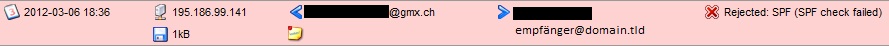 Wenn Kunde3 eine Email von gmx.ch sendet wird die Absender-Email Adresse nicht gelöscht, das Email wird abgelehnt wegen fehlerhaftem SPF-Check.