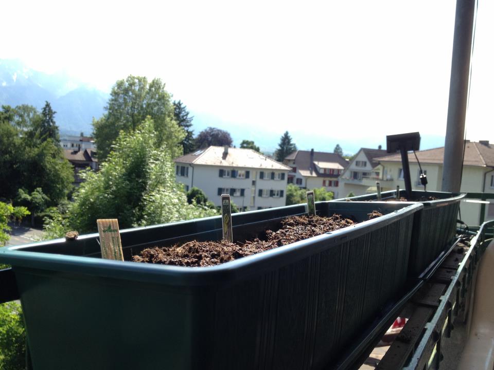 Meine Dachmaisonette mit ca. 70-80qm (jenachdem wie man die Dachschrägen im oberen Stock misst), Terrasse (ca. 25qm) mit Blick über die ganze Stadt zur allgemein Benutzung und Aussenparkplatz für rund 1200.-