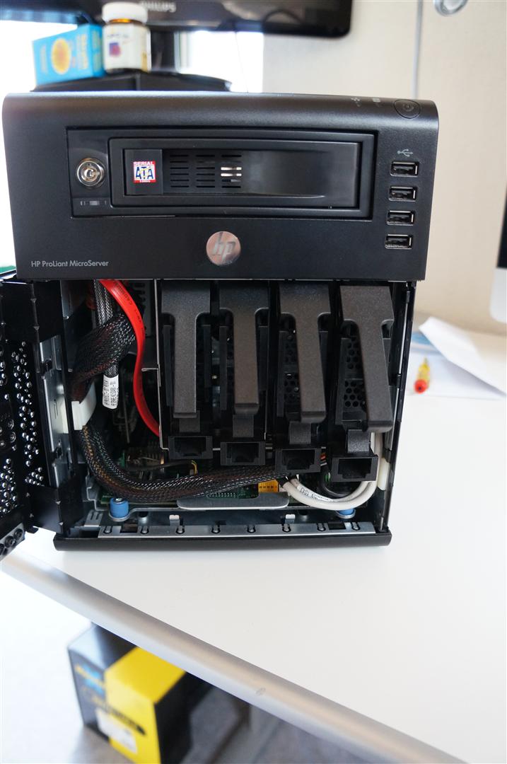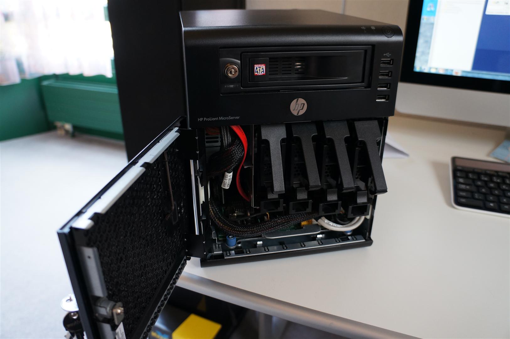 Habe das Gerät aufgerüstet auf 8GB Ram und einen Promise FastTrak TX8660 verbaut, so dass auch Raid5 möglich ist. Zudem die mitgelieferte 250GB Disk beim CD-Schacht eingebaut als OS- Disk, so dass 4 Slots für Datendisks bereit stehen.
