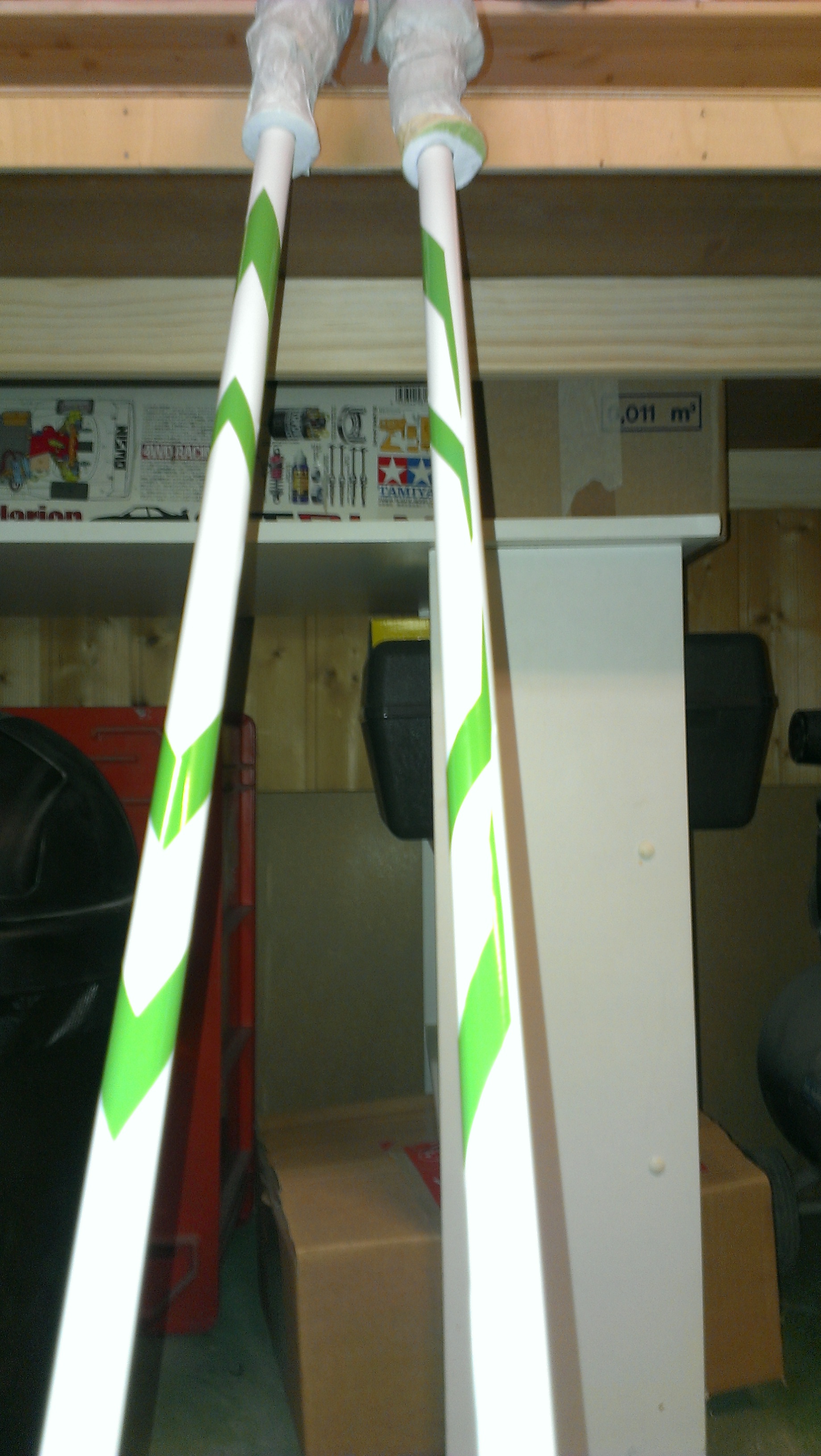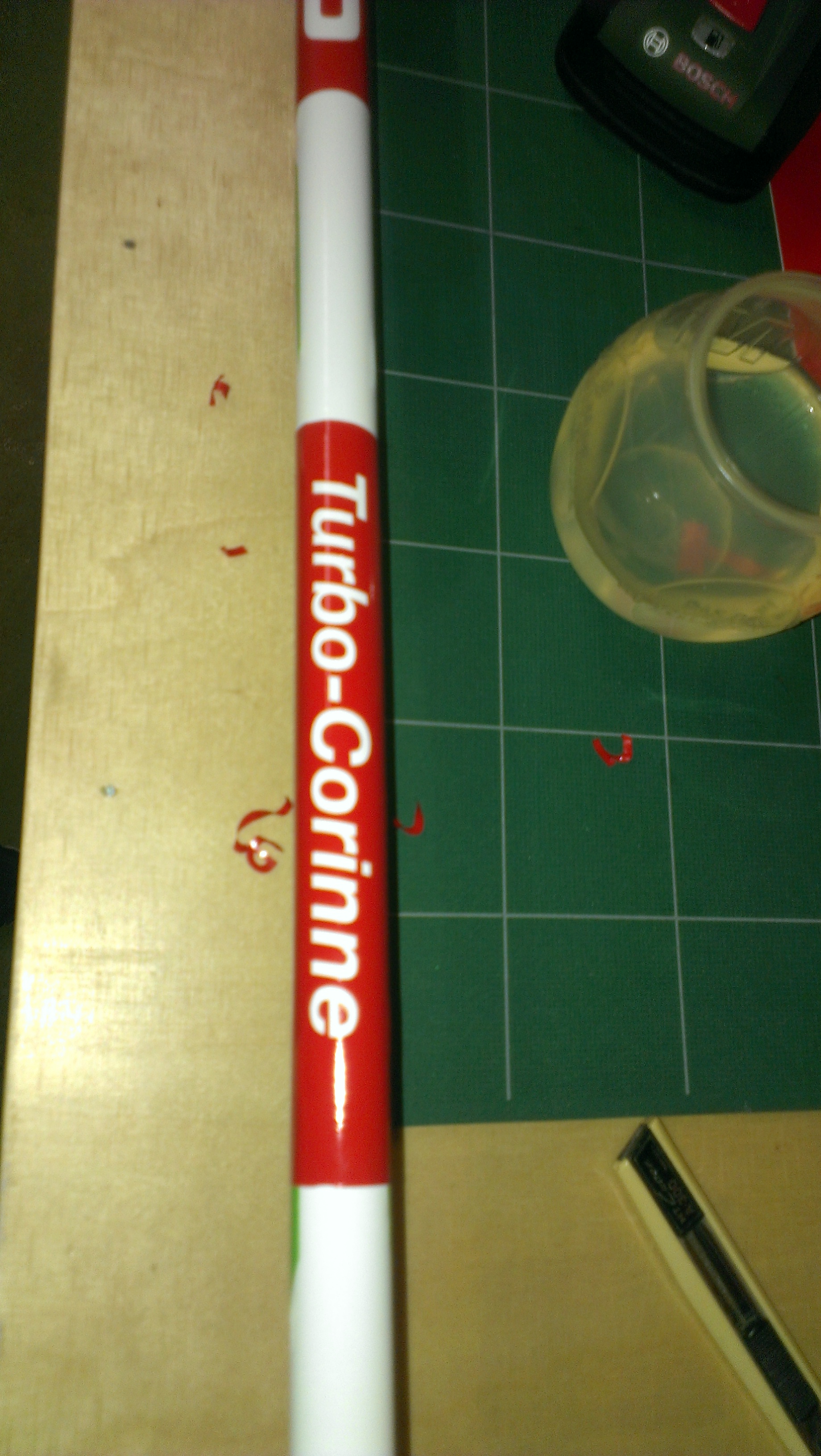 Ich habe so schwarze plastikfolie. Die hätte ich ausgeschnitten (negativ), auf den Stock geklebt, lackiert und die folie wieder entfernt. Nur fehlt mir eben der richtige Lack oder Farbe.