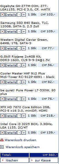 in deiner Aufstellung fehlt noch das DVD Laufwerk und die Soundkarte. Macht noch ein paar Fränkli aus.