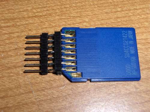 c) die Zuverlässigkeit der Kontakte im Selbstbau ist = 0 da sie nicht gefedert sind. Bei meinem Versuch hat immer wieder 1 Pin keinen Kontakt zur SD gehabt. Dieses Pin-Gebiege ist mir aufn Sack gegangen.