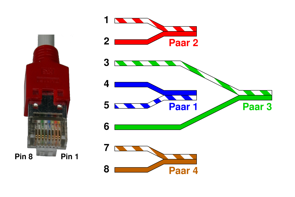 Pinbelegung am Stecker HalbOrange/Orange/HalbGrün/Blau/HalbBlau/Grün/HalbBraun/BraunAchso dann muss ich nur die Pins für die richtige "zahl" nehmen.