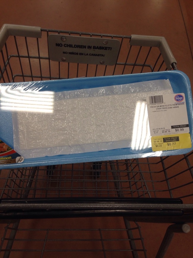 Der Beweis, dass Amis zum Lachs auch noch das Gewicht der Verpackung verkaufen. Und noch ein Super-Combo-Schnäppchen