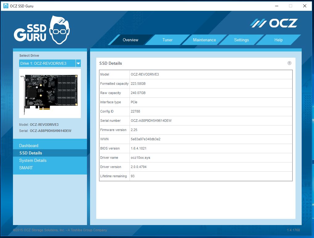SSD Guru zeigt noch 93% Lifetime übrig.