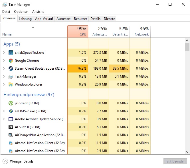 Nun ist mir aufgefallen, dass während dem Game Download auf Steam, die CPU voll ausgelastet war. Könnte die CPU der Flaschenhals sein?