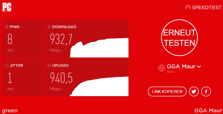 Resultat = > 900Mbit Down und >900Mbit Up...