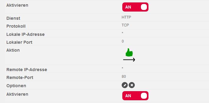 Das ist eigentlich genau das was ich gemacht habe (siehe mein Screenshot oben). Ausser HTTP wäre der falsche Dienst aber eigentlich dürfte ja nur der Port eine Rolle spielen oder?