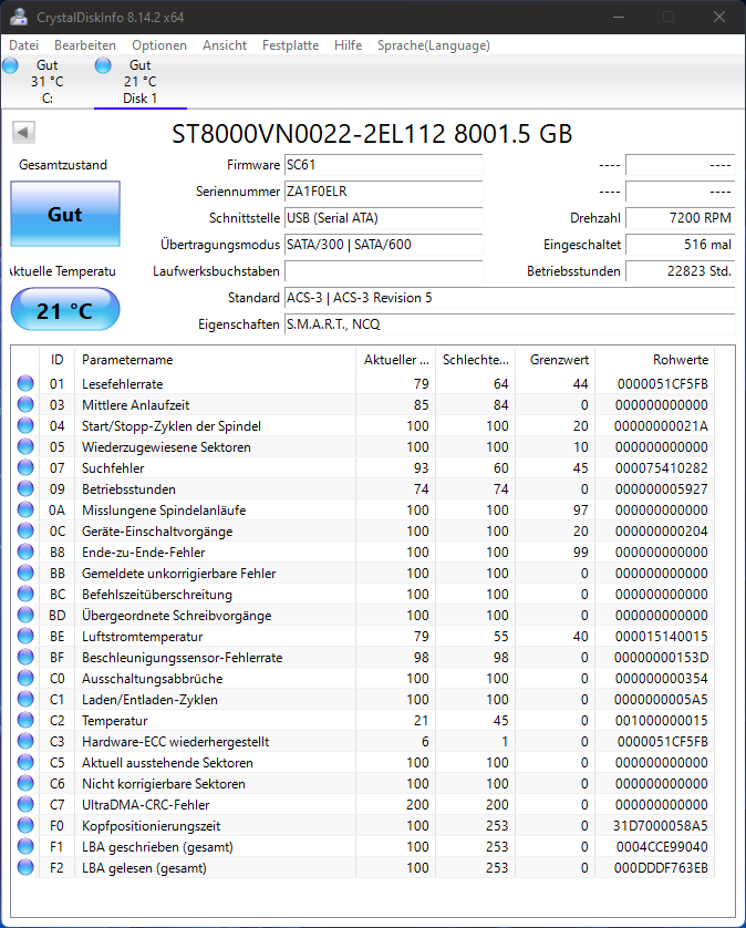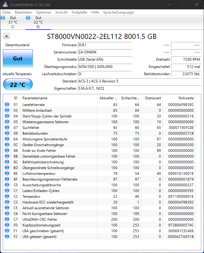 EDIT: Ich habe die SMART Werte ausgelesen.