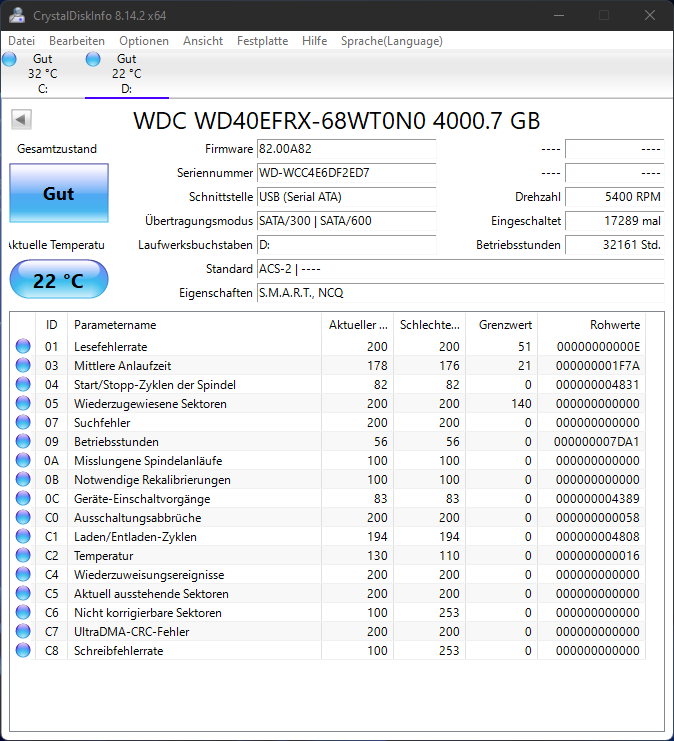 Ich hätte auch noch 2x WD Red 4TB welche schon etwas älter sind aber noch super funktionieren. Smart Werte sind auch vorhanden.