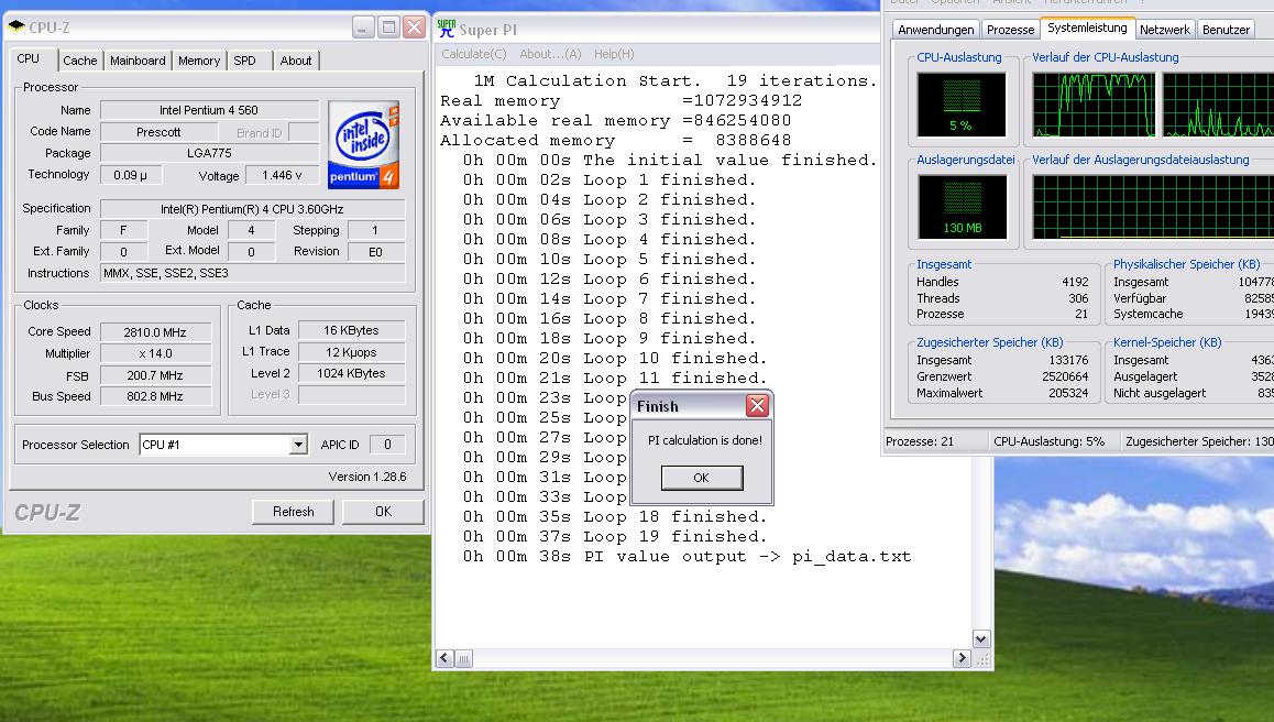 nur irgendwie dünkte mich der nicht wirklich schneller (eher lahmer) als der XP2400+, also mal SuperPI gestartet zum gucken. Ob ich jetz aber 44 oder 42 sek habe....