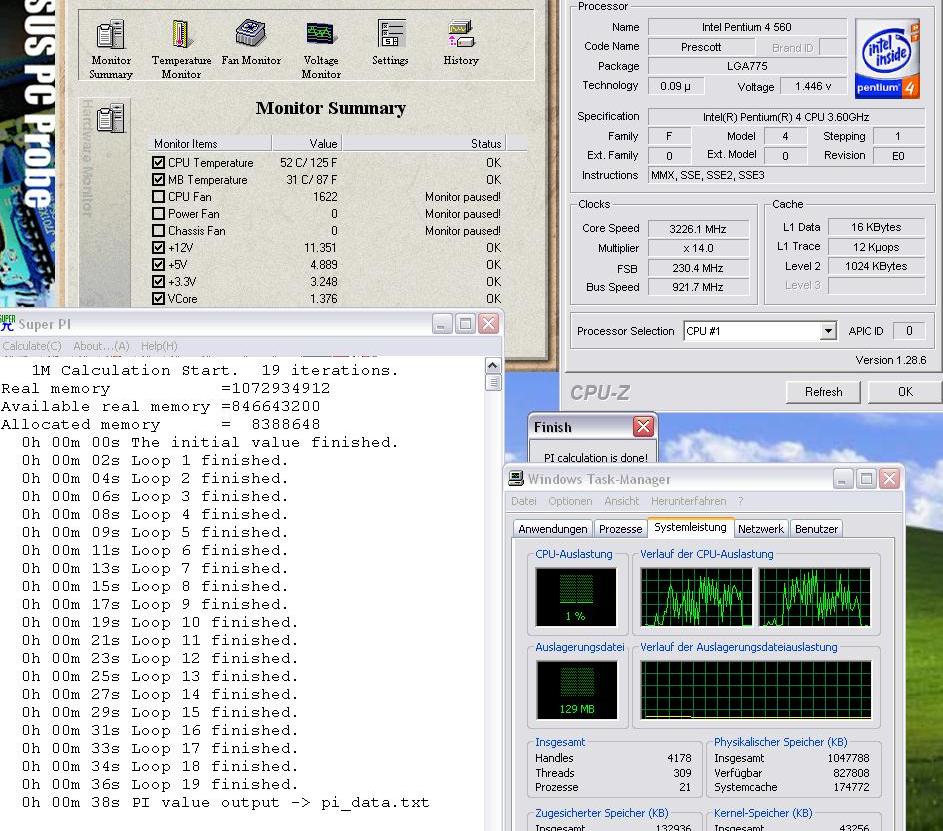 Naja, ich kann hier auch nirgendwo eine Übertaktung sehen :gruebel......zum Übertakten solltest du wohl besser sicherheitshalber das automatische runtertakten der CPU (ich meine die C'n'Q-Funktion der Intel-Systeme (dessen Namen ich leider auch nicht mehr weiss)) ausschalten im Bios.