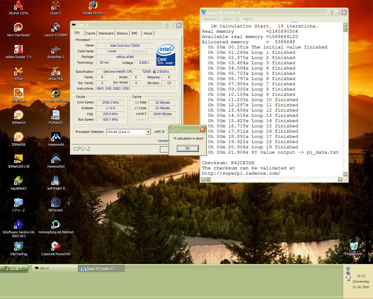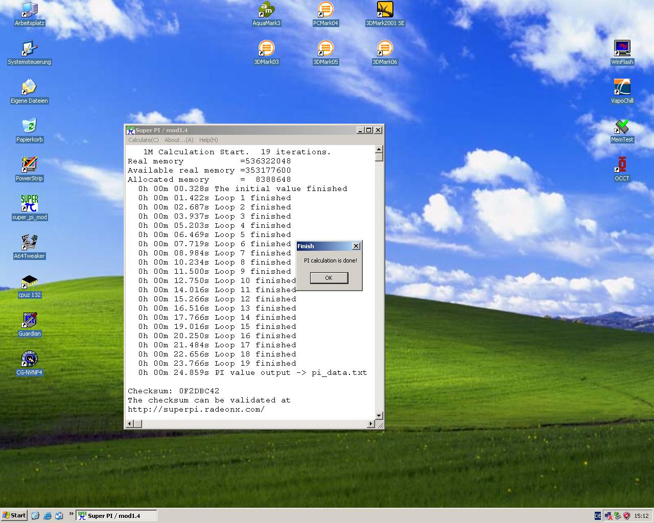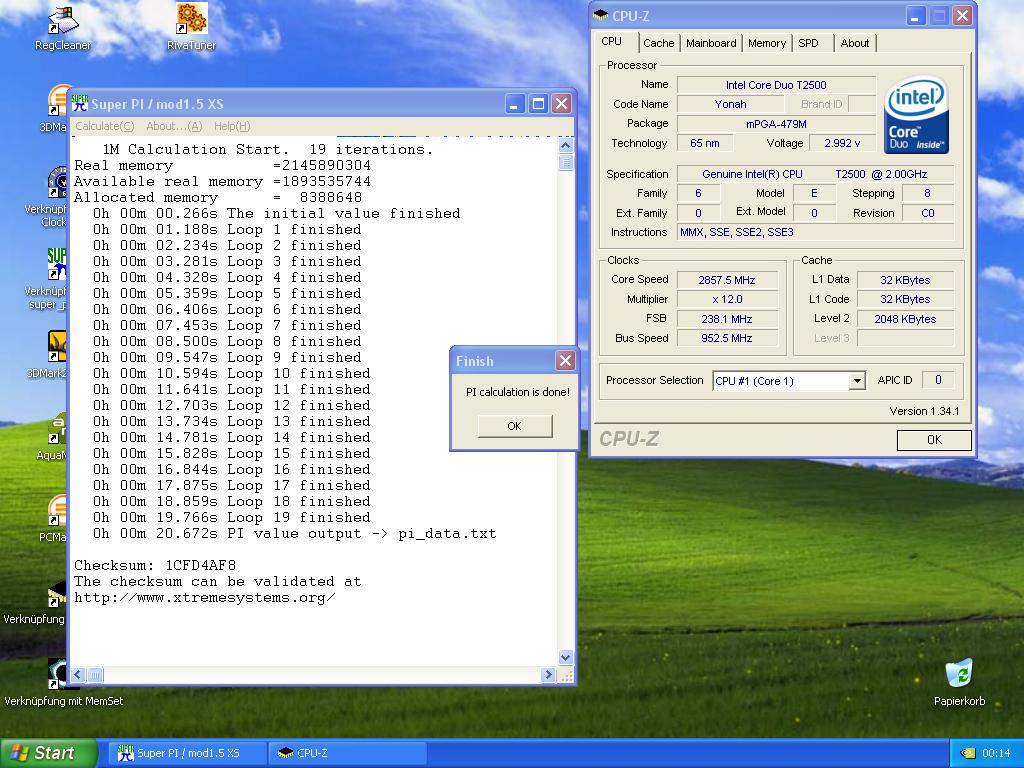 Eine Erhöhung der VCore bringt keine weiteren Mhz... Mit dem Ergebnis kann ich mich jedoch durchaus zufrieden geben. Sind immerhin rund 69% Overclock. :)) -
