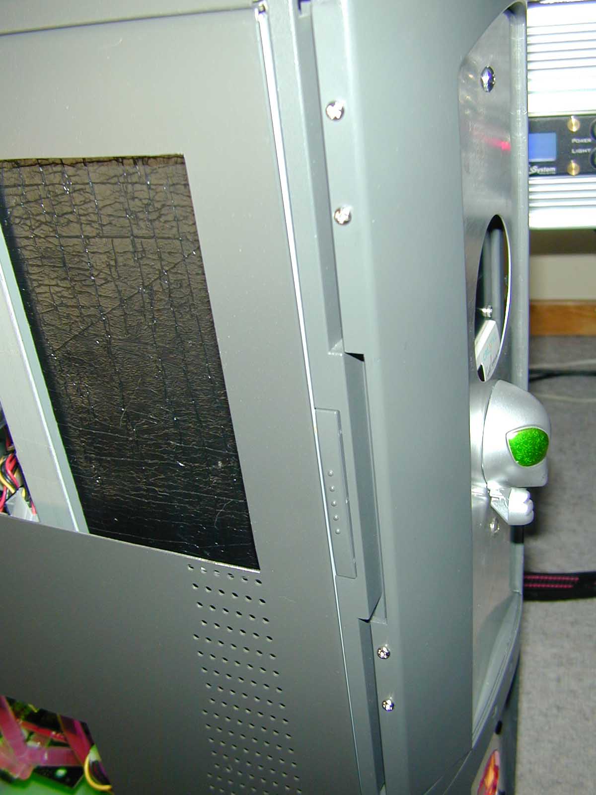 Vor ein paar Tagen, war die Frontblende nur mit Isloierband festgemacht, jetzt wird sie mit 2 *blechen festgehalten, mir gefallen die kleinen Schrauben, gibt ein bisschen kontrast und detail ins case