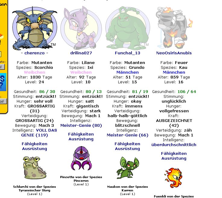 Ich bin seit längerem auf neopets.com unterwegs.