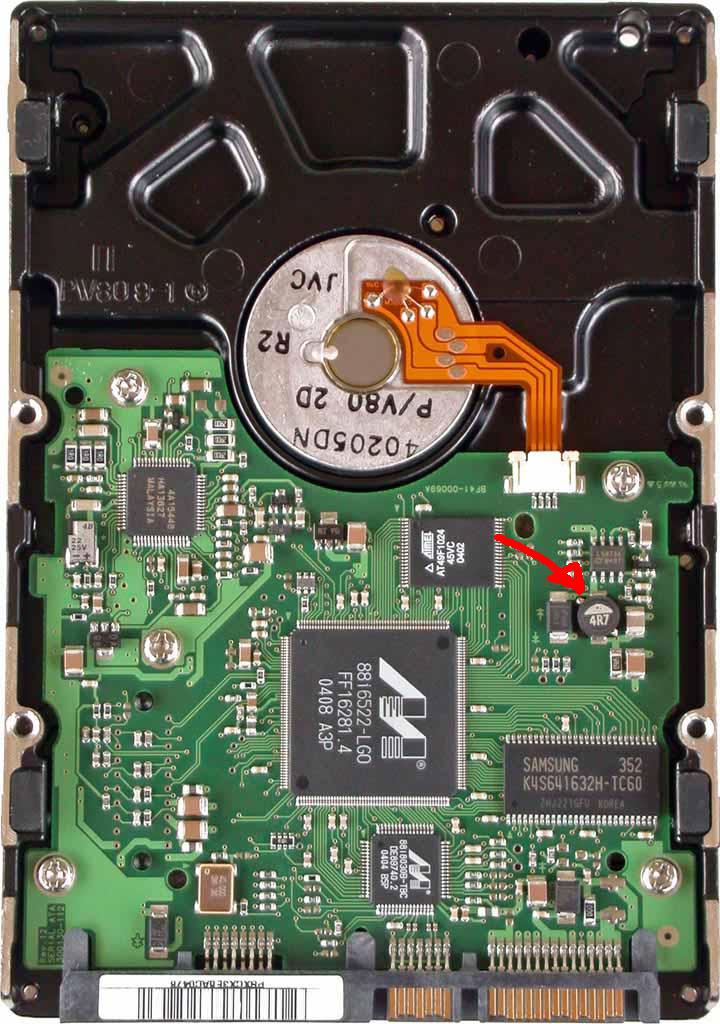 als sie dann nach 20 versuchen (gerade mal eine stunde, nachdem es das windows wieder repartiert hatte) noch immer nicht ansprang, hab ich se mal ausgebaut, und musste mit erschecken feststellen, dass irgend ein kondensator/chip/kA was das ist im 45Grad winkel von der HD abstand und so munter fröhlich in der luft schwebte....
