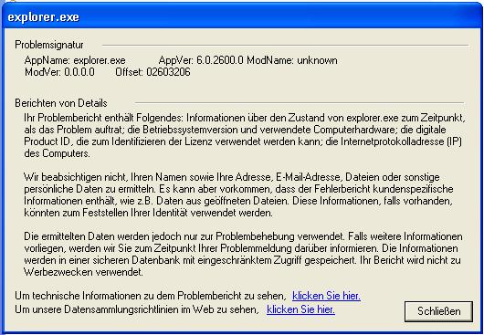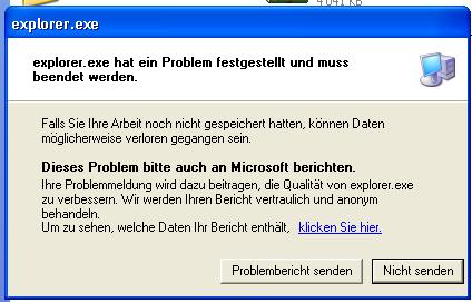 manchmal erscheint auch die selbe fehlermedlung doch anstatt explorer.exe steht dort drwtsn32.exe