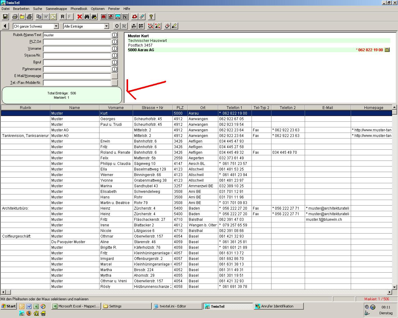 Auskunft von TwixTel: