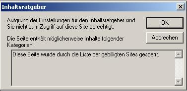 E: ich kann das ja super einfach im IE eingeben, welche Sites zugelassen sind und welche nicht. Aber dann erscheint so ein doofes Fenstr: