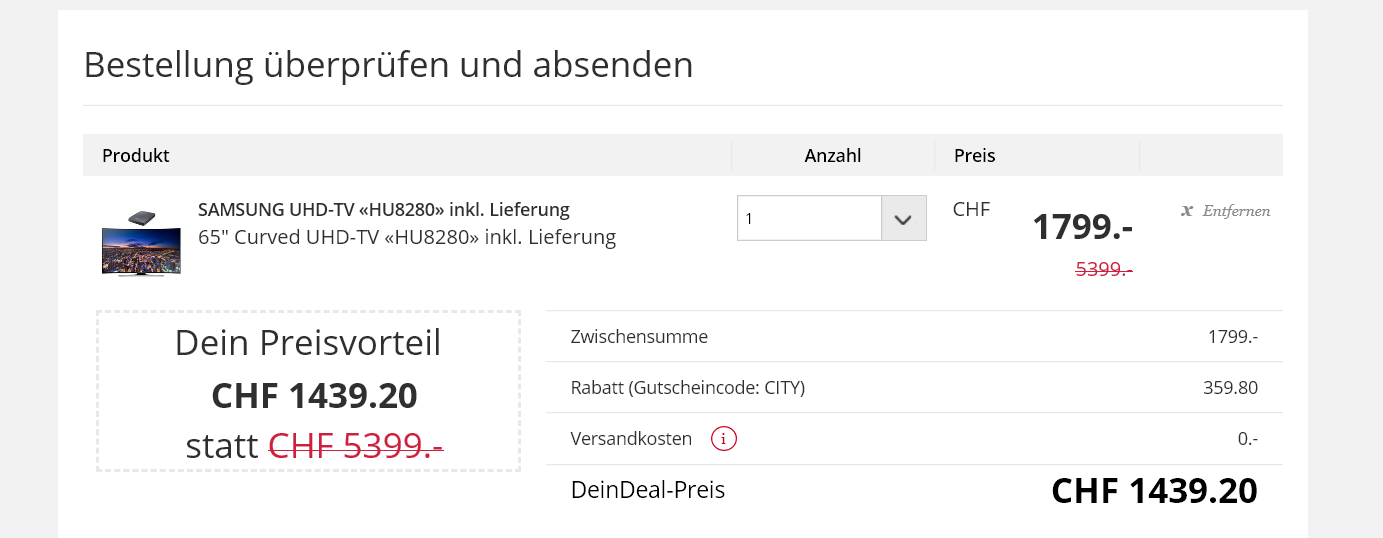 Aktuell 1799 CHF statt vorher 5000 CHF