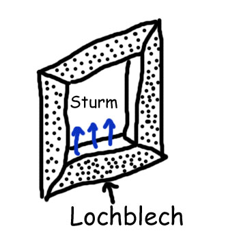 das Lochblech würde als "Blende" dienen so könnte ich gut 2cm als Dicke des Sturms brachen. Hat jemand noch eine andere bessere Idee? -