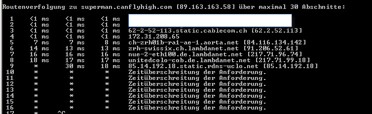 Kannst ja Deine Server bei mir ins Datacenter stellen, über den Preis werden wir uns sicherlich einig, dann stehen die Server in der Schweiz und hast sau gute Pings.Ich habe nur bei einem Kunden FTTH im Einsatz, selber nutze ich andere Leitungen. Im Tracert von meinen Ersten Post siehst Du CATTV-Internat von Cablecom gegen Glas von Cablecom. Zeigt natürlich schön auf das cablecom im Buisnessumfeld über Glas schon einen Besseren Services bietet