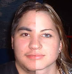 laut Studien sucht man unbewusst Partner aus, die ähnliche/gleiche Gesichtsformen/Gesichtszüge/Proportionen haben. man kann also realtiv häufig z.B. Passfotos nehmen, halbieren (mitte von oben nach unten) und je die Hälfte von einem Gesicht zusammentun, um zu merken, dass es stimmt.