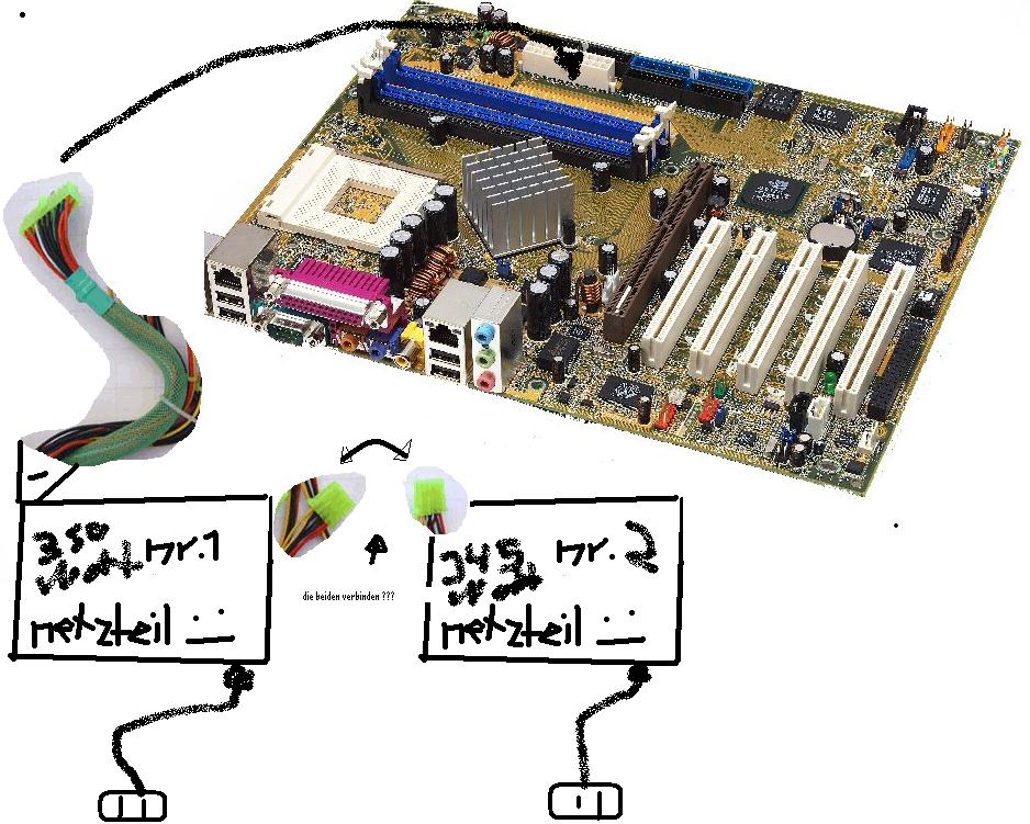 ) nur hab ich ja ein neues main board mit nur einem netzteil stecker aufm board .. kann mir wer helfen wie ich das problem lösen kannmfg ( ist nur notlösung )