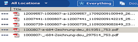 Wenn ich mit WDS nach einer Nummer (z.B. 1000807) suche findet er nur die untersten zwei Einträge (siehe Anhang). Wenn ich jedoch nach *1000807* suche, findet er alle Einträge.Was ich feststellen konnte, dass wenn ein Dokument mit XYZ beginnt, danach einen "_" hat, danach gleich die gesuchte Zahl drin steht, findet WDS es auch (z.B. XYZ_1000807.pdf). Das Problem besteht nur, wenn die Zahl nach einem "-" steht (XYZ-1000807.pdf).