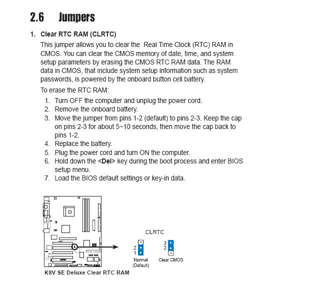Schlag mal im Manual Kapitel 2.6 auf und lies das durch. Da ist ein CMOS CLR erklärt.