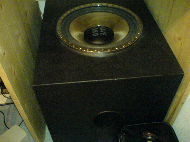 Ich hab da nen Subwoofer. Die Maximalleistung beträgt 500 Watt, RMS oder auch Sinius genannt bringt er 180 Watt. Er ist ziemlich gross (40cm auf 40cm auf 50cm). Das Resonanzrohr hat einen Durchmesser von ungefähr 10cm