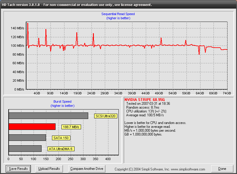 onboard SATA Raid 0 für System und Programme. Etwa 50 % belegt.Scheint solide zu sein. Limitierend ist wohl der Bus?