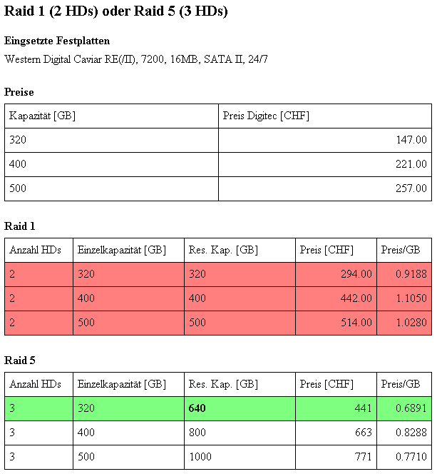 Ich hab mal ne Zusammenstellung (Stand 17.02.2007) gemacht. Natürlich gehe ich davon aus, dass ich in beiden Fällen nicht den onboard Controller verwende, da nvraid bekackt ist. Es müssen auf jeden Fall die angegeben HDs eingesetzt werden, da 24/7