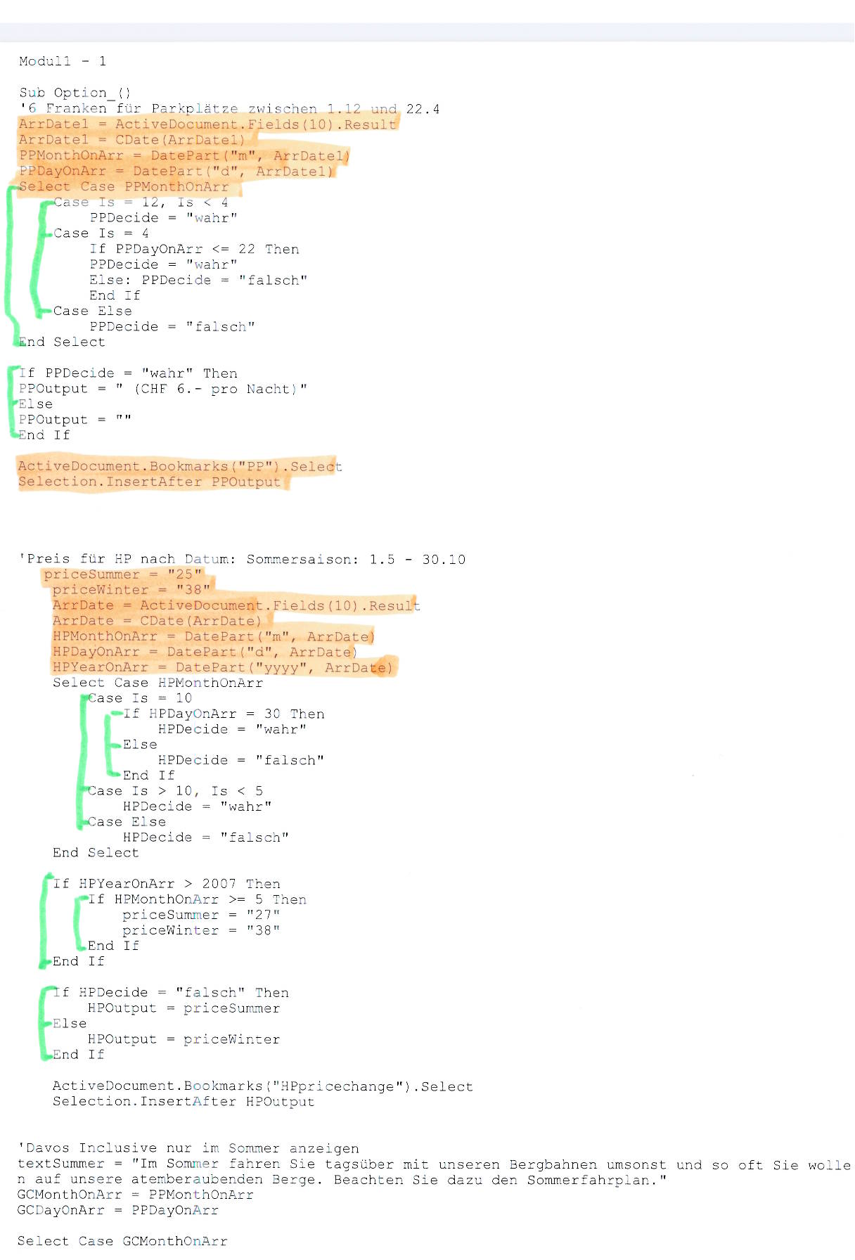 Kann mir wer sagen, was ich genau für die ActiveDocument.Fields resp für die ActiveDocument.Bookmarks im Dokument vorbereiten muss, damit das Makro wieder reibungslos abläuft?Danke und Gruss tiG