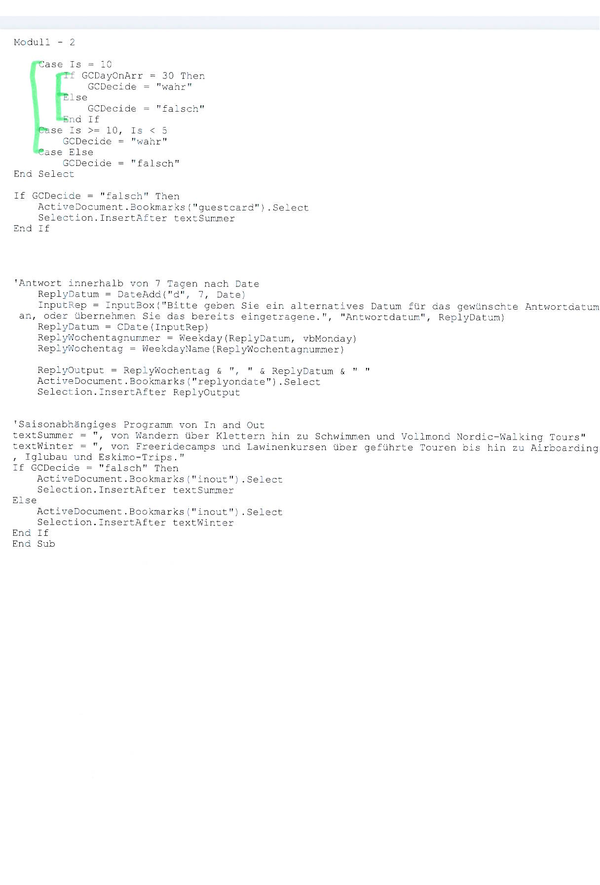 End SelectIf GCDecide = "falsch" Then