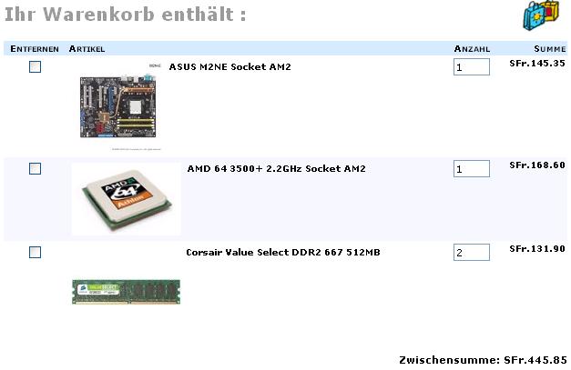 Ich würde den Intel durch einen Athlon 64 3200+ mit sockel AM-2 ersetzen (da dieser DDR-2 verwendet und vorallem zukunftssicherer ist), gründe: