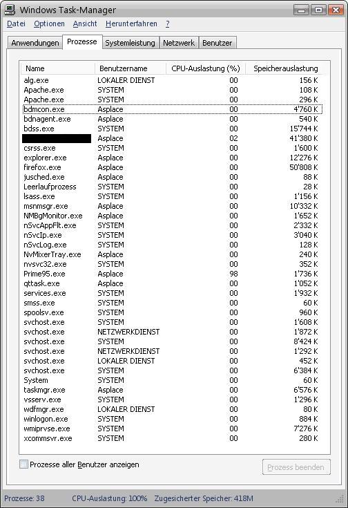 Ich komme einfach auf den Desktop zurück; der Prozess wird einfach gekillt.