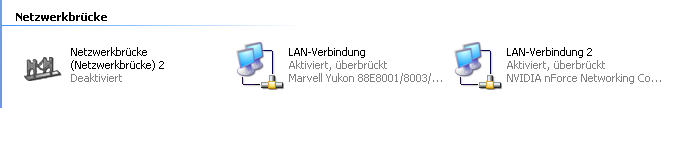 Start, Systemsteuerung Netzwerkverbindungen, beide Netzwerkkarten markieren (erst die erste, controll gedrückhalten und dan die zweite), rechte maustaste, verbindung überbrücken, fertig