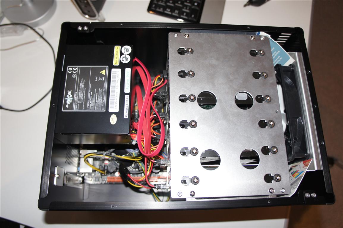 Netzteil geht ein beliebiges ATX Netzteil. Vorzugsweise aber eines mit modularen oder kurzen Kabeln. Einfach der Ordnung halber, vor allem wenn man 6 HD installieren will.