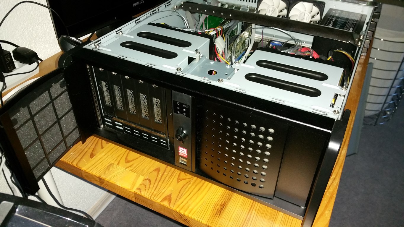 mit 10x SATA Einschub (Lüfter müsste man ersetzen, machen Lärm, gehen aber noch)