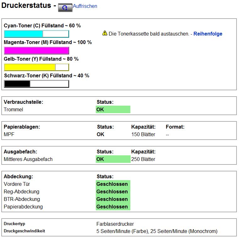 pünktlich zu seinem Jahrestag hat sich mein Farblaser so halbwegs verabschiedet.