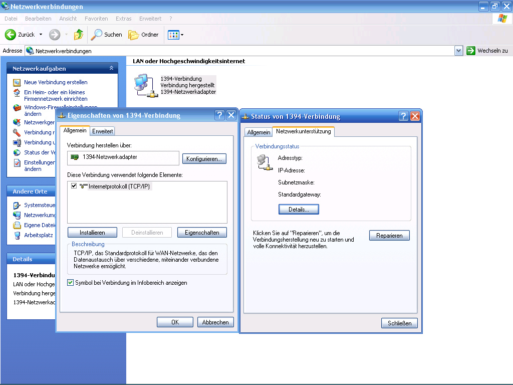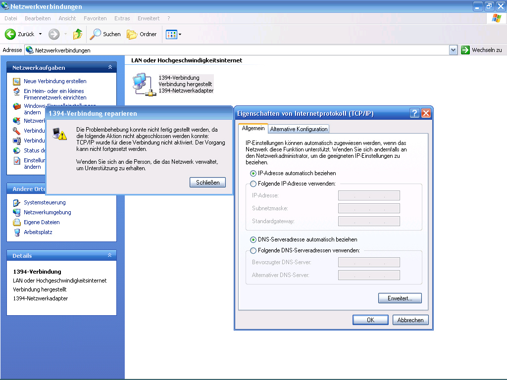 Wenn ich nun auf reparieren drücke kommt folgende Meldung:1394-Verbindung reparieren