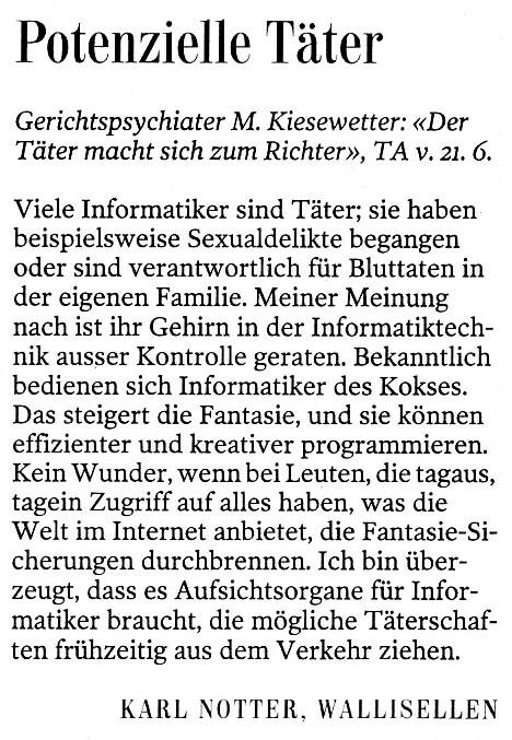 Sehr qualifizierte Aussage und nur knapp am Thema vorbei
