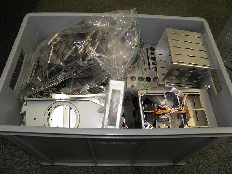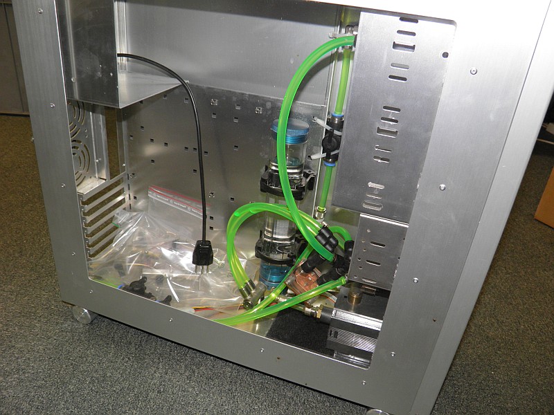 1x Lian Li PC-75 Gehäuse mit Alu-Rollen inkl. WaKü bestehent aus Watercool Triple Radi mit 3x Papst 120mm Lüfter, NexXxoS XP LGA775 und AM2/3 Halterung, Eheim 1250 230Volt, Tank-O-Matic AGB, Diverse Anschlüsse und Verschluss Kupplungen System ist für einen Externen Radiator vorbereitet und man kann den internen Radiator zu oder aus schlissen usw.!!!
