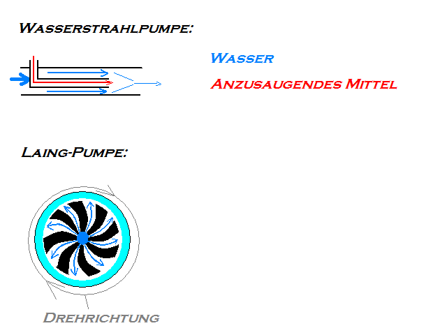 Das helblaue Wasser in der Laing-pumpe dreht sich langsamer als das Schaufelrad. -
