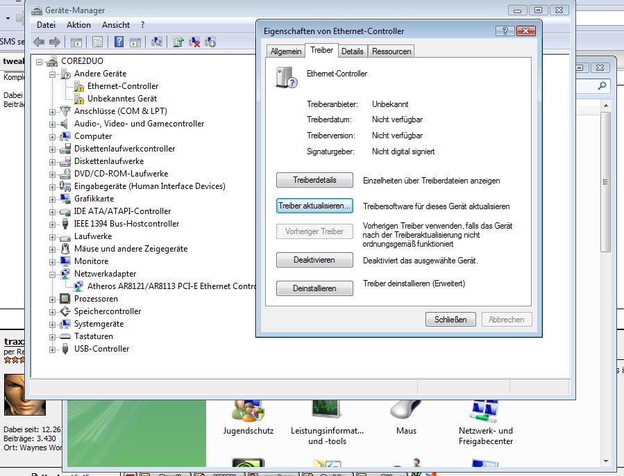 Nein das unbekannte Gerät war die Webcam, hab sie aber abgeschlossen und nun ist nur noch der Controller da und das muss ja die Netzwerkkarte sein..