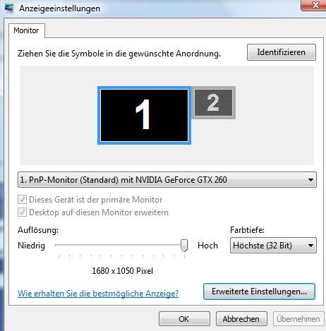 Nun wenn ich bei der Anzeigeeinstellung bin zeigts der Monitor gar nicht an. Und die Auflösung ist auch nicht hervoragend..